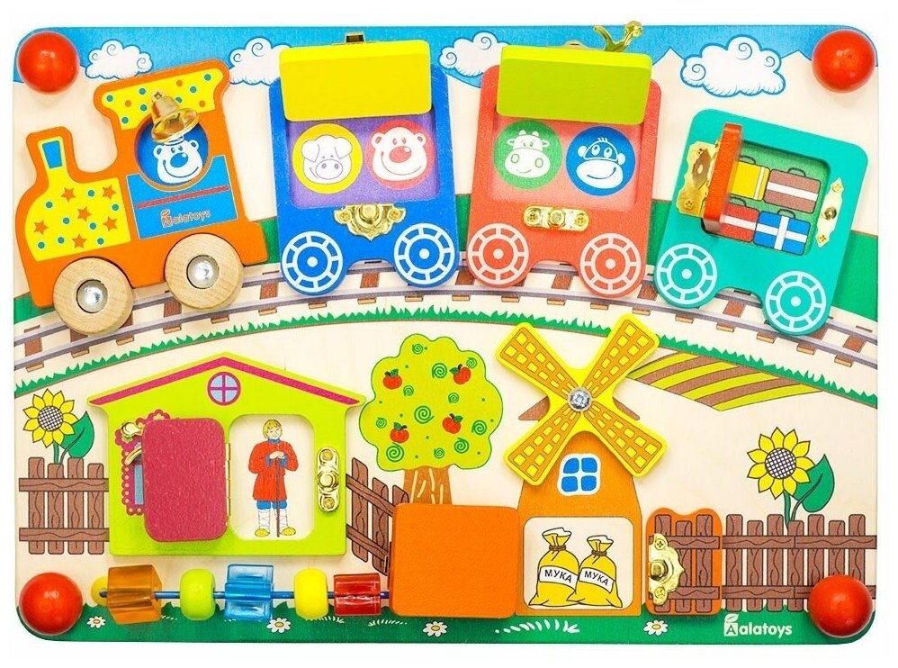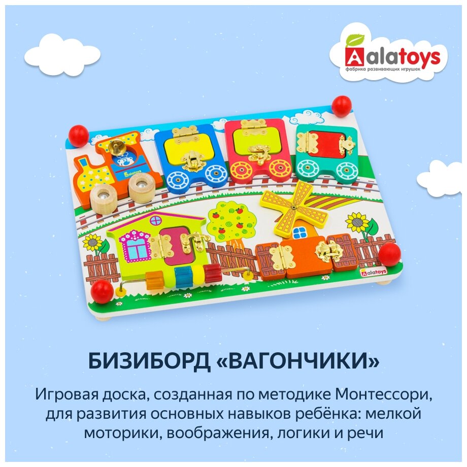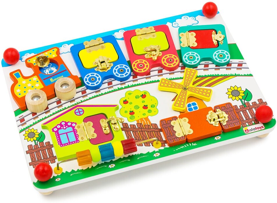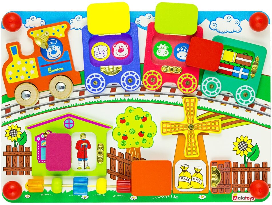- Бизиборд Алатойс (Alatoys) Вагончики - развивающая доска для детей