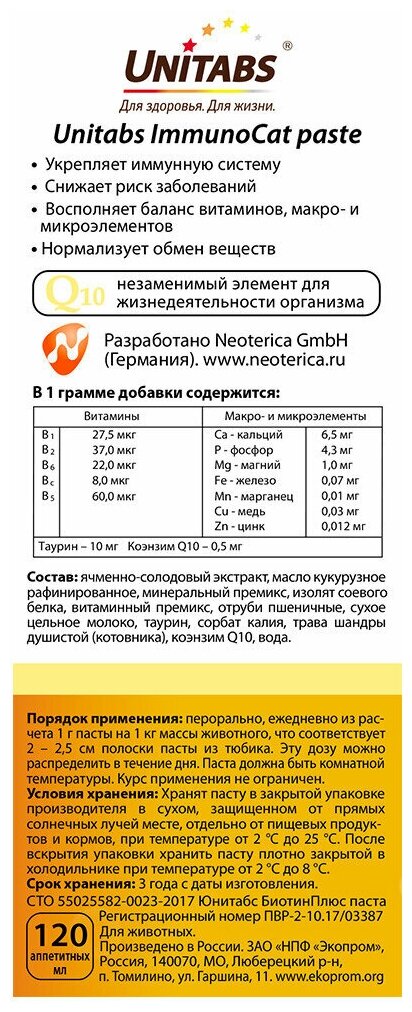 Гель Unitabs для кошек ImmunoCat с Q10 120мл (65954)