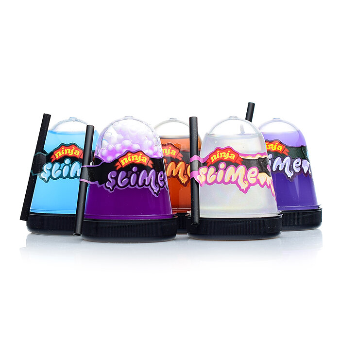 Ninja Slime - это необыкновенный лизун, наделенный суперсилой, пластичностью и эластичностью. Из него можно выдувать пузыри, используя трубочку из набора. Если растянуть Slime и поставить под струю воды, завернув уголки, то он сможет держать жидкость как шарик.