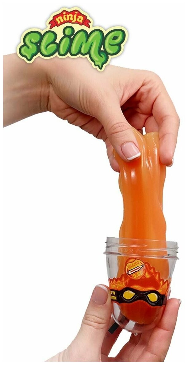 Ninja Slime - это необыкновенный лизун, наделенный суперсилой, пластичностью и эластичностью. Из него можно выдувать пузыри, используя трубочку из набора. Если растянуть Slime и поставить под струю воды, завернув уголки, то он сможет держать жидкость как шарик.