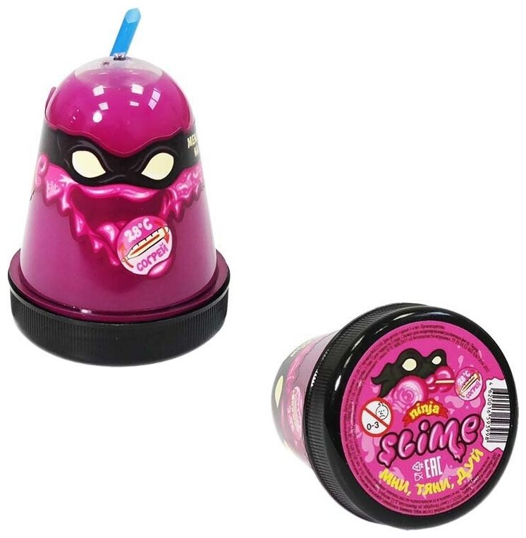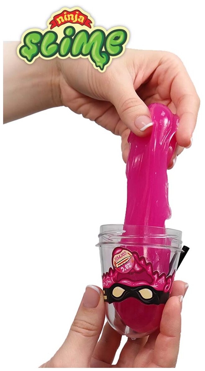 Ninja Slime - это необыкновенный лизун, наделенный суперсилой, пластичностью и эластичностью. Из него можно выдувать пузыри, используя трубочку из набора. Если растянуть Slime и поставить под струю воды, завернув уголки, то он сможет держать жидкость как шарик.