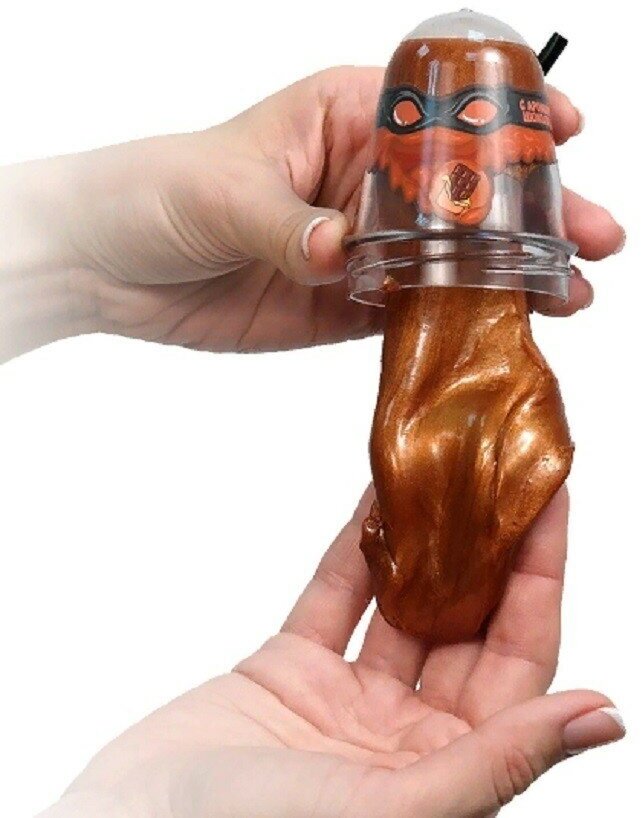 Ninja Slime - это необыкновенный лизун, наделенный суперсилой, пластичностью и эластичностью. Из него можно выдувать пузыри, используя трубочку из набора. Если растянуть Slime и поставить под струю воды, завернув уголки, то он сможет держать жидкость как шарик.