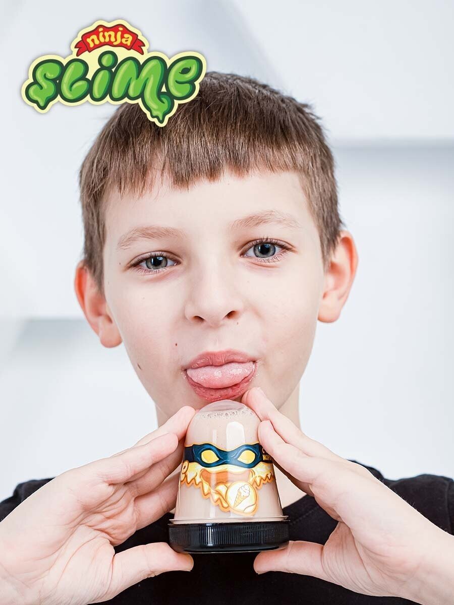 Ninja Slime - это необыкновенный лизун, наделенный суперсилой, пластичностью и эластичностью. Из него можно выдувать пузыри, используя трубочку из набора. Если растянуть Slime и поставить под струю воды, завернув уголки, то он сможет держать жидкость как шарик.
