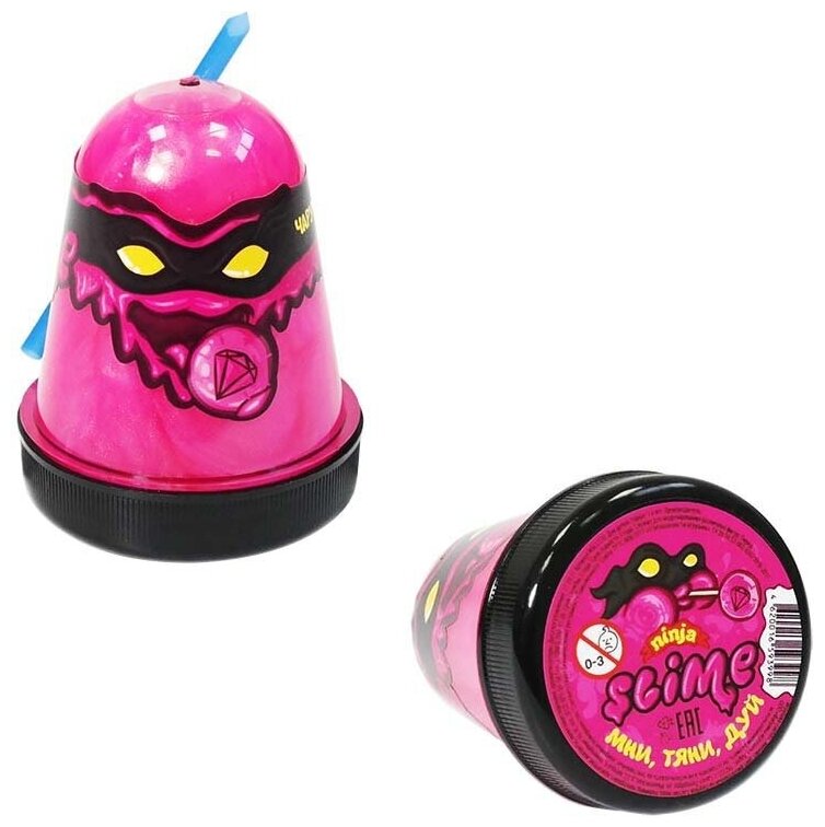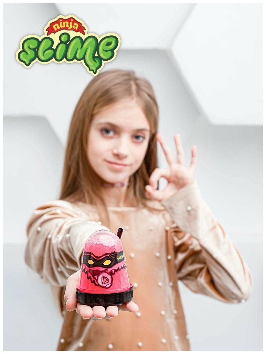 Ninja Slime - это необыкновенный лизун, наделенный суперсилой, пластичностью и эластичностью. Из него можно выдувать пузыри, используя трубочку из набора. Если растянуть Slime и поставить под струю воды, завернув уголки, то он сможет держать жидкость как шарик.