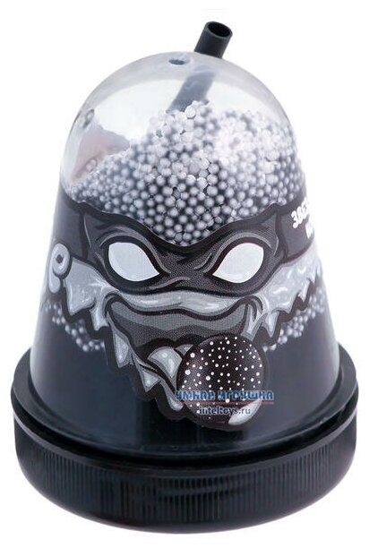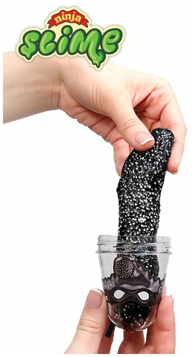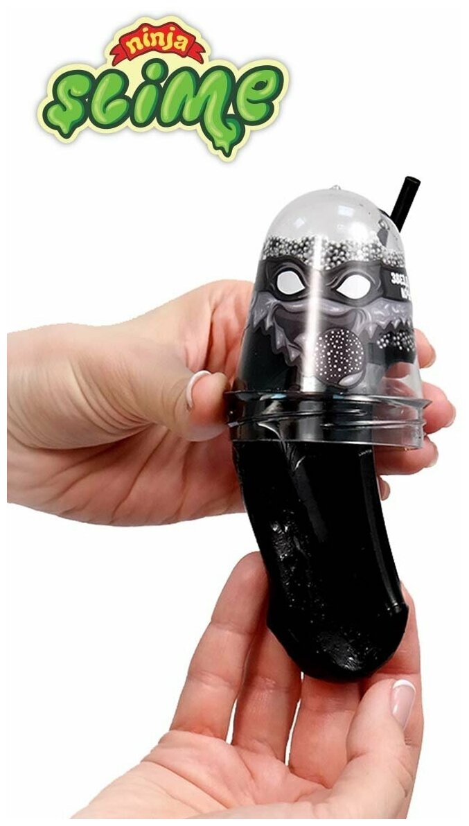 Ninja Slime - это необыкновенный лизун, наделенный суперсилой, пластичностью и эластичностью. Из него можно выдувать пузыри, используя трубочку из набора. Если растянуть Slime и поставить под струю воды, завернув уголки, то он сможет держать жидкость как шарик. Черный.