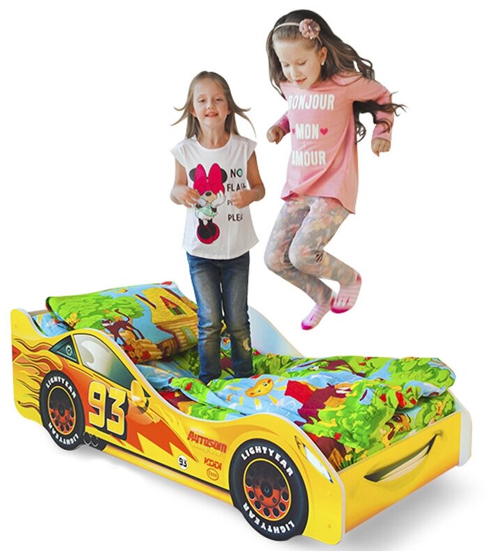 Невозможно пройти мимо яркой и комфортной кроватки Тачка желтая. Выполненная в виде гоночного автомобиля, она станет эффектным украшением детской комнаты, а небольшие габариты позволят ей вписаться в ограниченное пространство. При этом спальное место, изготовленное в соответствии с ГОСТом, имеет оптимальные размеры для полноценного отдыха ребенка. Кровать оборудована защитными бортиками, которые уберегут малыша от падения во сне и во время игр. Кроме того, конструкцией предусмотрена нагрузка до 200 кг, поэтому она прослужит ребенку не один год. А если в семье есть малыш помладше, то и он впоследствии сможет спать и играть на ней. Изделие сохранит свой прежний вид. Нанесенный методом фотопечати рисунок останется таким же четким и красочным. В производстве кровати-машинки мы использовали только безопасные экологические материалы: дерево и ЛДСП класса Е1. Они не токсичны и не нанесут вреда детскому здоровью. В комплект модели входит качественная фурнитура, монтажный инструмент и понятная инструкция. Сборка займет несколько минут, а если привлечь к этому маленького помощника, то процесс пройдет весело и познавательно.