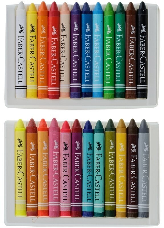 Канцелярские товары немецкого производителя Faber Castell - великолепный помощник школьникам каждому творческому ребенку! Набор восковых карандашей прекрасно подойдет как для юных, так и для более опытных художников. Удобная округлая треугольная форма позволит легко держать карандаш в руке. При рисовании сильный нажим не требуется. Карандаши рисуют с эффектом масляной краски, что позволит ребенку создавать собственные уникальные шедевры. В наборе 24 разноцветных восковых карандаша. Карандаши выполнены из экологически-чистого воска. Не крошатся. Продаются в яркой картонной коробке.