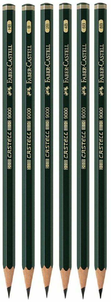 Карандаш чернографитовый Faber-Castell Castell 9000 твердость 2B 4B B HB 6В 8В в металлической коробке 6 шт. (119063)
