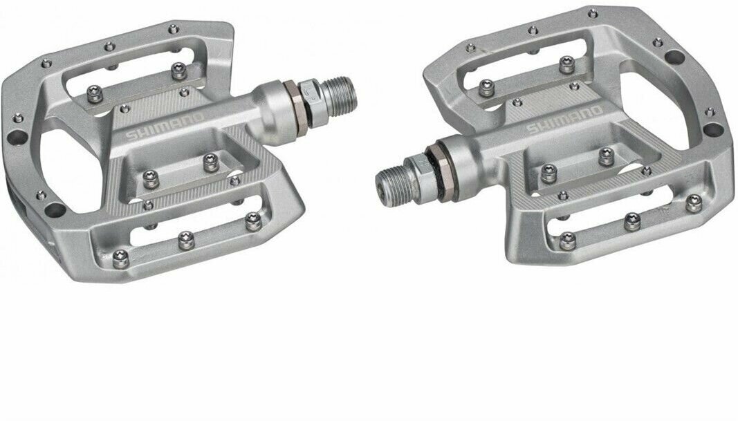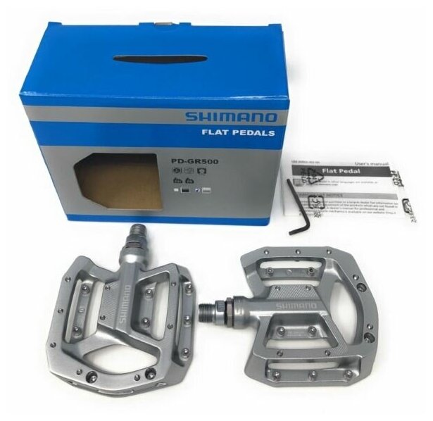 Надежные педали-платформы Shimano . Корпус педалей выполнен из алюминия, ось хром-молибденовая, герметичный обслуживаемый механизм подшипников. По 18 сменных шипов на педале. Замечательный вариант для катания в экстремальных дисциплинах MTB до туризма.