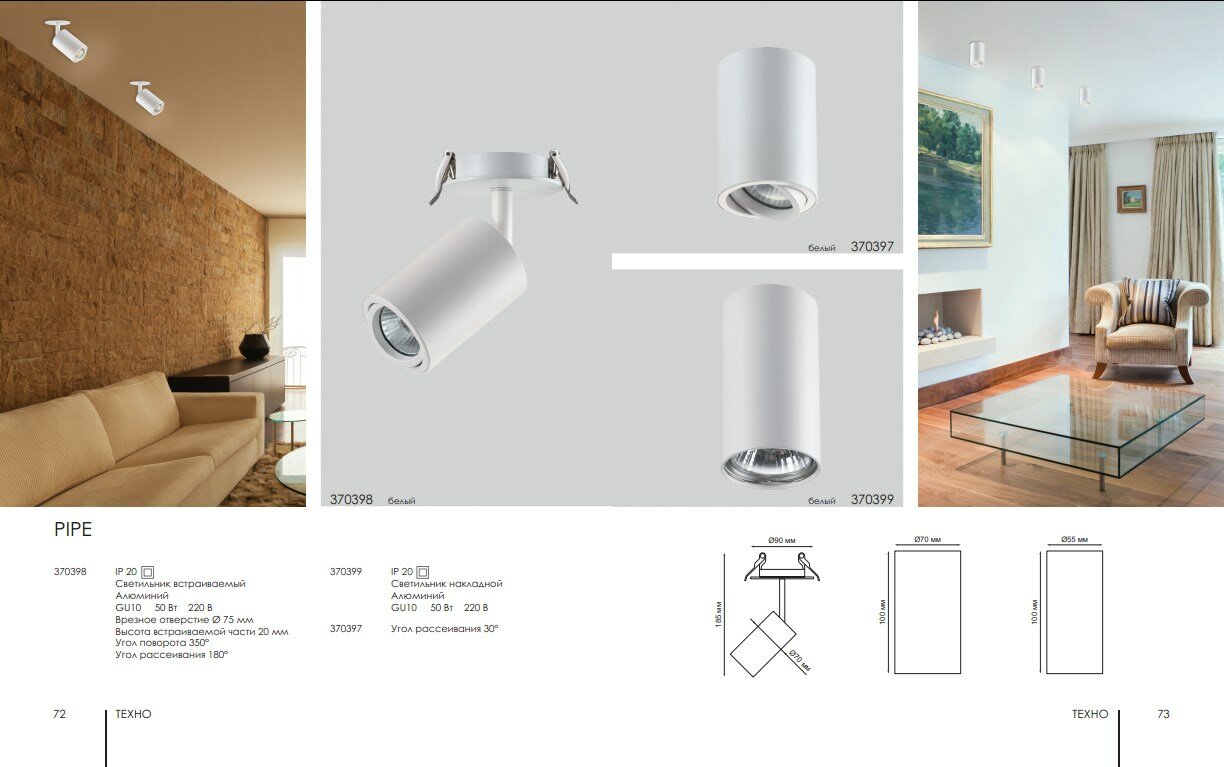 Накладной точечный светильник PIPE - продукт известной компании Novotech (Венгрия). Имеет максимальную мощность 50 Вт, освещает площадь до 4 кв. м. Отлично подойдет для таких мест, как гостиная, кафе, холл, офис, прихожая и коридор. Впишется в интерьеры следующих стилей: модерн.