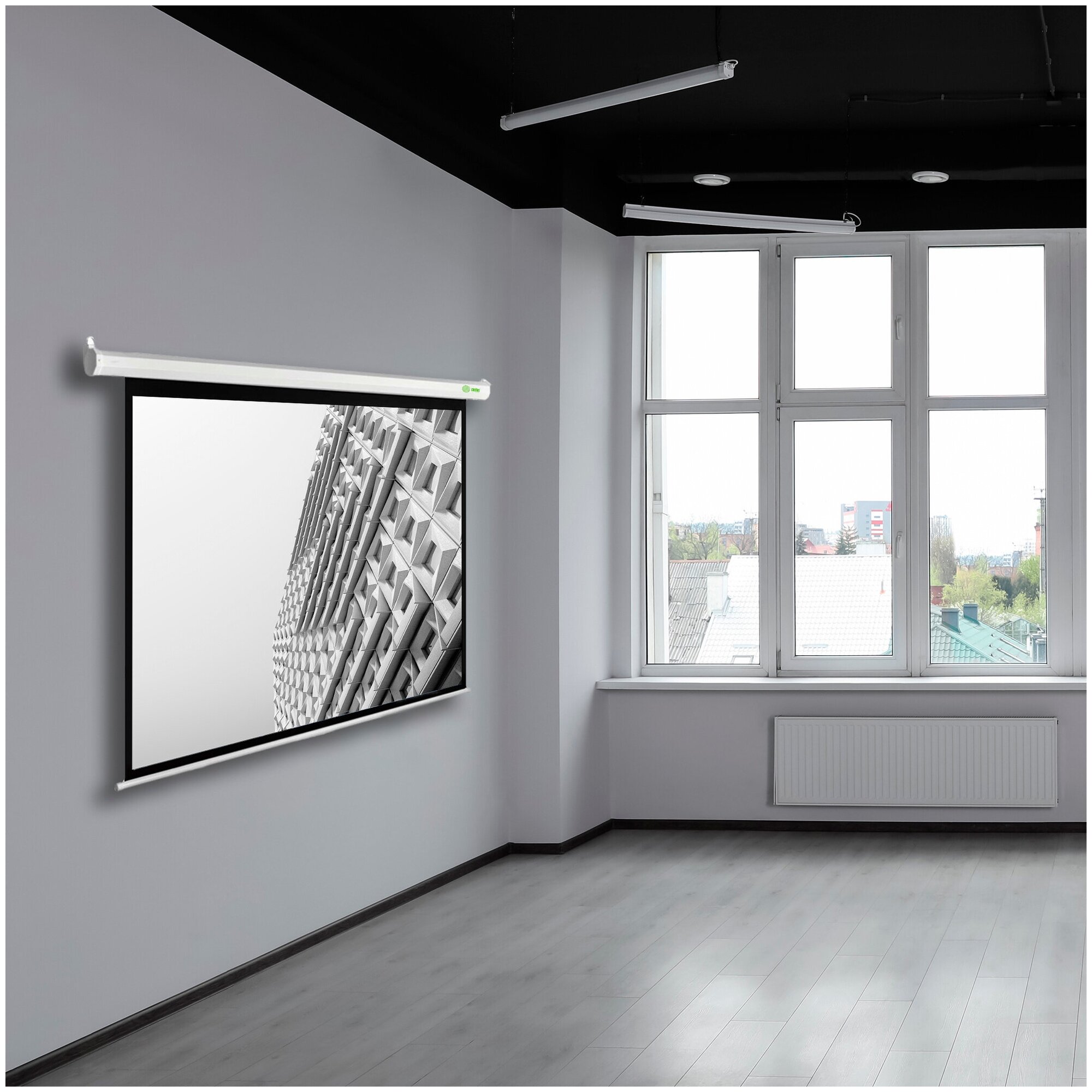Экран не боится длительного хранения в свёрнутом состоянии и при повышенной влажности, антиплесневое покрытие полотна не даст ему испортиться. Моторизированный привод и пульт управления делают использование экрана лёгким. Проводите презентации где и как вам удобно.
