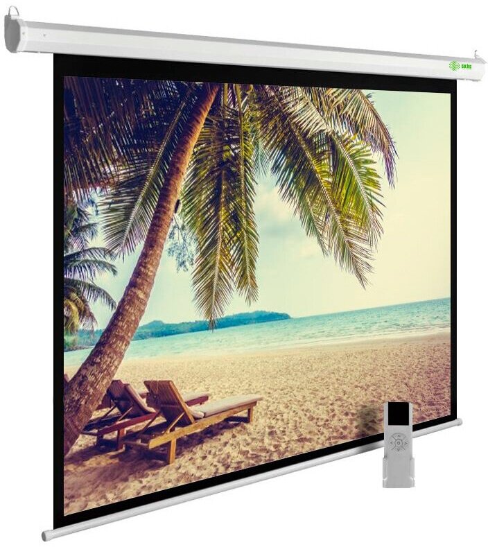 Экран не боится длительного хранения в свёрнутом состоянии и при повышенной влажности, антиплесневое покрытие полотна не даст ему испортиться. Моторизированный привод и пульт управления делают использование экрана лёгким. Проводите презентации где и как вам удобно.