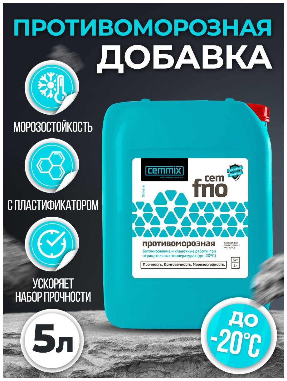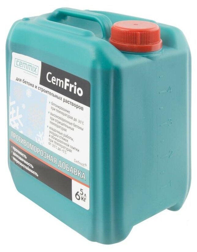 Зима во многих регионах России длится почти полгода. Чтобы строители имели возможность работать в холода, компания Cemmix производит добавки, препятствующие замерзанию воды в кладочных и штукатурных растворах, бетонах и стяжках. Добавка CemFrio запускает в растворе ряд химических реакций, которые понижают температуру замерзания, увеличивают скорость затвердевания и прочность, повышают сцепку бетона с арматурой, защищая ее от коррозии. Благодаря антифризу со строительными растворами, можно работать до 20 градусов мороза.