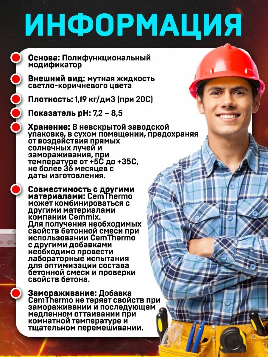Добавка CemThermo повышает подвижность и растекаемость смеси для заливки теплых полов, а также облегчает процесс выравнивания. С высокоэффективной пластифицирующей добавкой раствор становится более однородным, плотным и прочным. Он быстрее твердеет и требует на 10-20% меньше воды. Использование добавки позволяет сделать поверхность стяжки более гладкой, водонепроницаемой, устойчивой к истиранию, агрессивным средам и образованию трещин. CemThermo будет эффективна при устройстве теплых и наливных полов, стяжек и плит перекрытий.