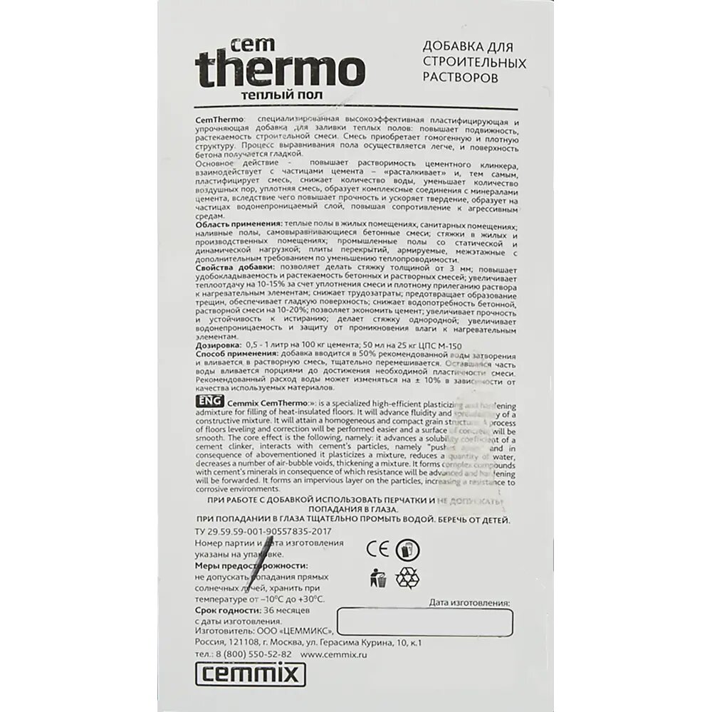 Добавка для теплых полов Cemmix »