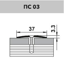 Алюминиевый анодированный профиль ПС 03 с зоной рифления по центру и с монтажными отверстиями закрывает стык двух одноуровневых поверхностей.