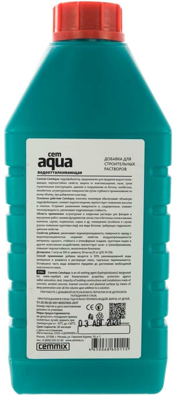 Модель: Водоотталкивающая добавка Cemmix CemAqua прозрачная 1 л