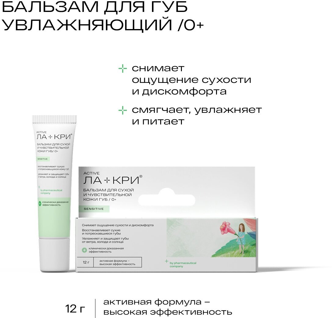 Бальзам для губ Ла-Кри бережно ухаживает за тонкой и сухой кожей. Благодаря своему составу он служит защитой от агрессивного воздействия холодного ветра и влажной среды, холодного воздуха и опасных УФ-лучей. Заживляет и предотвращает растрескивание, шелушение, делает губы увлажненными и мягкими.Для получения более подробной информации, а также узнать мнение эксперта, настоятельно рекомендуем ознакомиться с данной статьей.