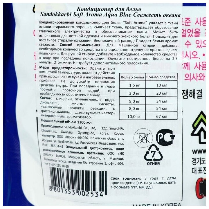 Кондиционер Sandokkaebi Свежесть океана запасной блок Soft Aroma 1.3 л (8801353-002534)