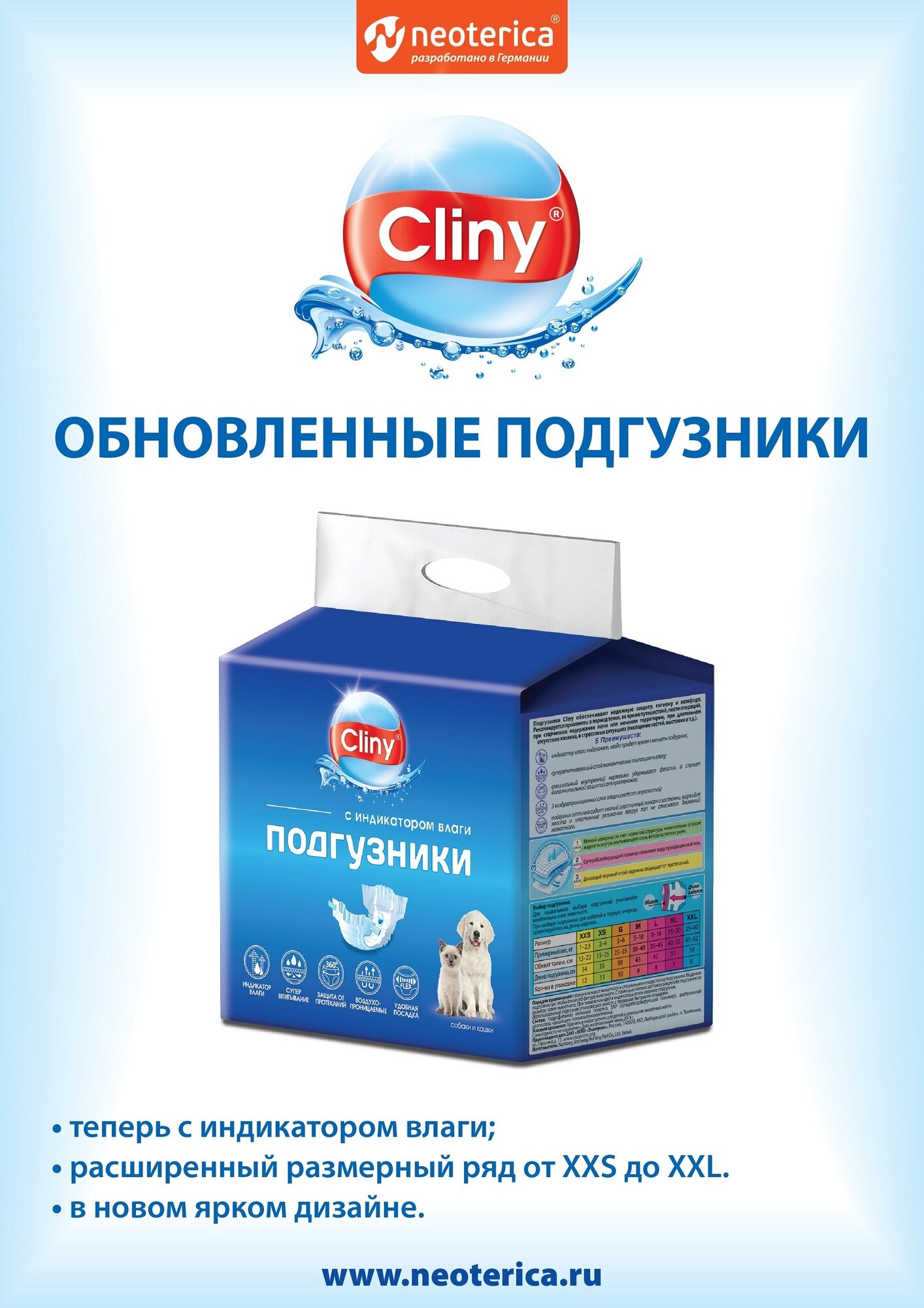 Пеленки, подгузники, салфетки для собак и кошек CLINY