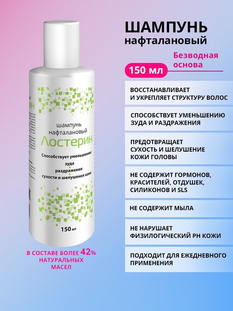 Шампунь Лостерин нафталановый специально предназначен для ежедневного ухода за сухой, чувствительной, раздраженной кожей головы и волосами. Шампунь Лостерин содержит в своем составе сбалансированную комбинацию активного нафталана, натуральных масел и экстрактов лекарственных растений. При нанесении шампуня на поверхность кожи происходит быстрое взаимодействие поверхностного липидного барьера кожи и липидов «Лостерина». Биоактивные компоненты шампуня проникают во внутренние слои эпидермиса, обеспечивая комплексное терапевтическое воздействие на кожу головы и волосы.