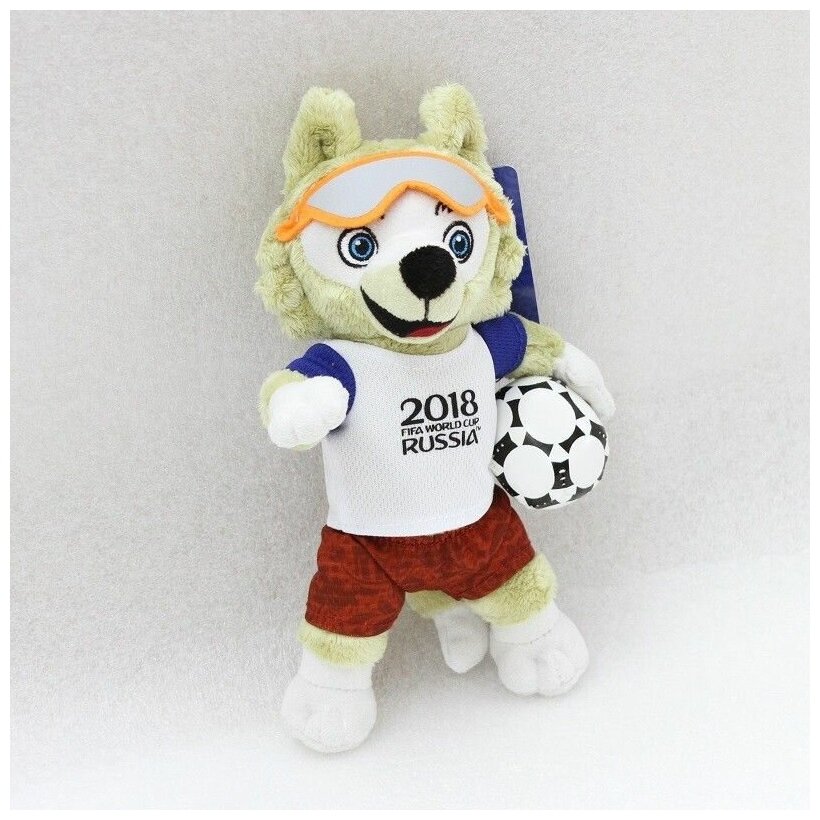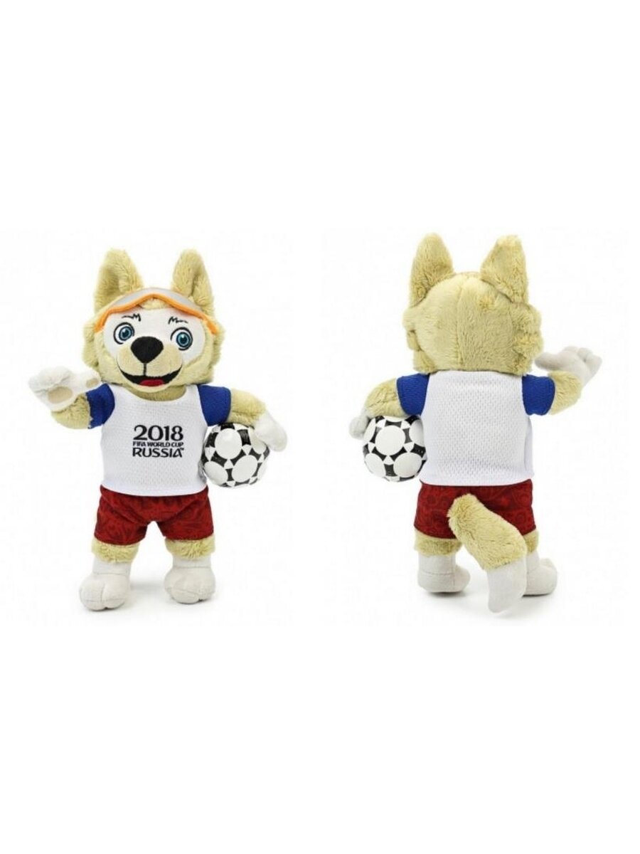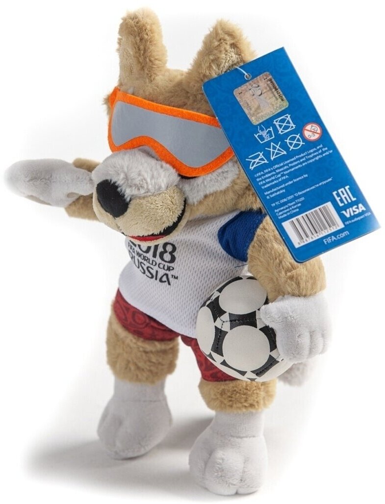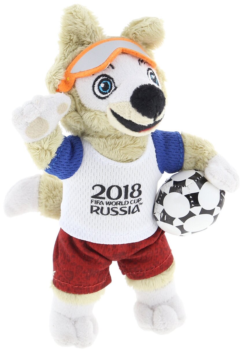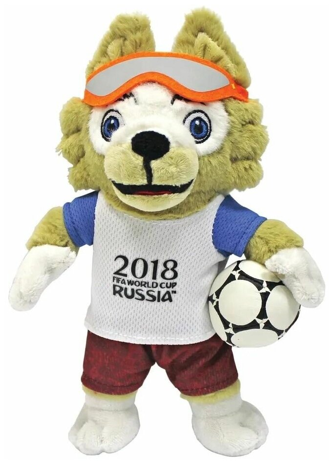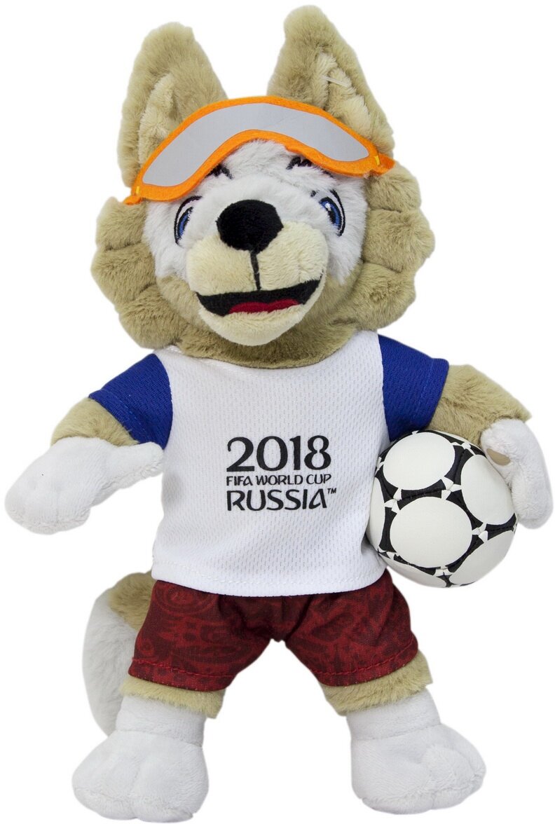 Мягкая игрушка Zabivaka из серии FIFA-2018 станет прекрасным подарком для фаната футбола. Волк Забивака является талисманом будущего Чемпионата мира, который будет проводиться в России. Коричнево-белый волчонок одет в футболку с символом RUSSIA 2018. Сочетание цветов одежды представляют собой цвета сборной России. В руках Забивака держит мяч, который похож на тот, что будет использоваться в чемпионате.