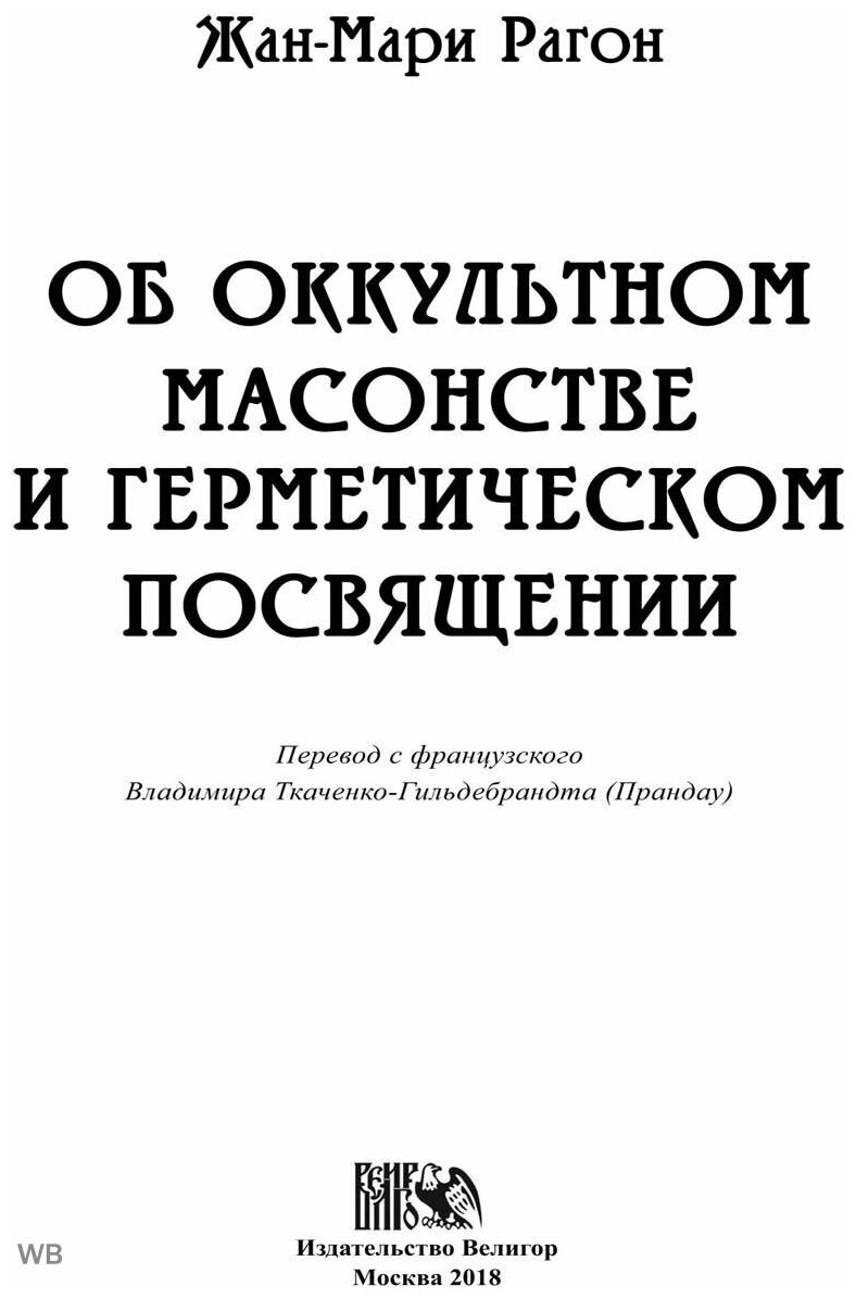 Об оккультном масонстве и герметическом посвящении (Рагон Ж.-М.); Велигор, 2018