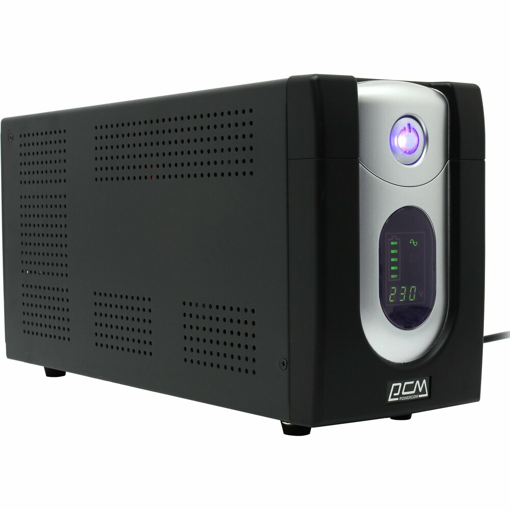 Благодаря линейно-интерактивному источнику бесперебойного питания Powercom можно обеспечить надежную защиту персональных компьютеров и рабочих станций от последствий наиболее распространенных неполадок с электропитанием – высоковольтных выбросов, электромагнитных и радиочастотных помех, понижений, повышений и полного исчезновения напряжения в электросети. Устройство оснащено качественным ярким цифровым дисплеем, отображающим режим работы ИБП, заряд аккумулятора и выходное напряжение. Встроенный стабилизатор напряжения (AVR) поддерживает выходное напряжение в пределах нормы, не используя ресурс аккумуляторов при колебании напряжения электросети в широком диапазоне. Powercom снабжен несколькими внутренними аккумуляторами для увеличения времени автономной работы с возможностью их замены пользователем. Интерфейс USB для соединения с компьютером позволяет сворачивать работу операционной системы с сохранением данных при разряде аккумуляторов ИБП – за счет этого Powercom обеспечивает не только защиту электропитания, но и сохранность пользовательской информации и компьютерных программ.