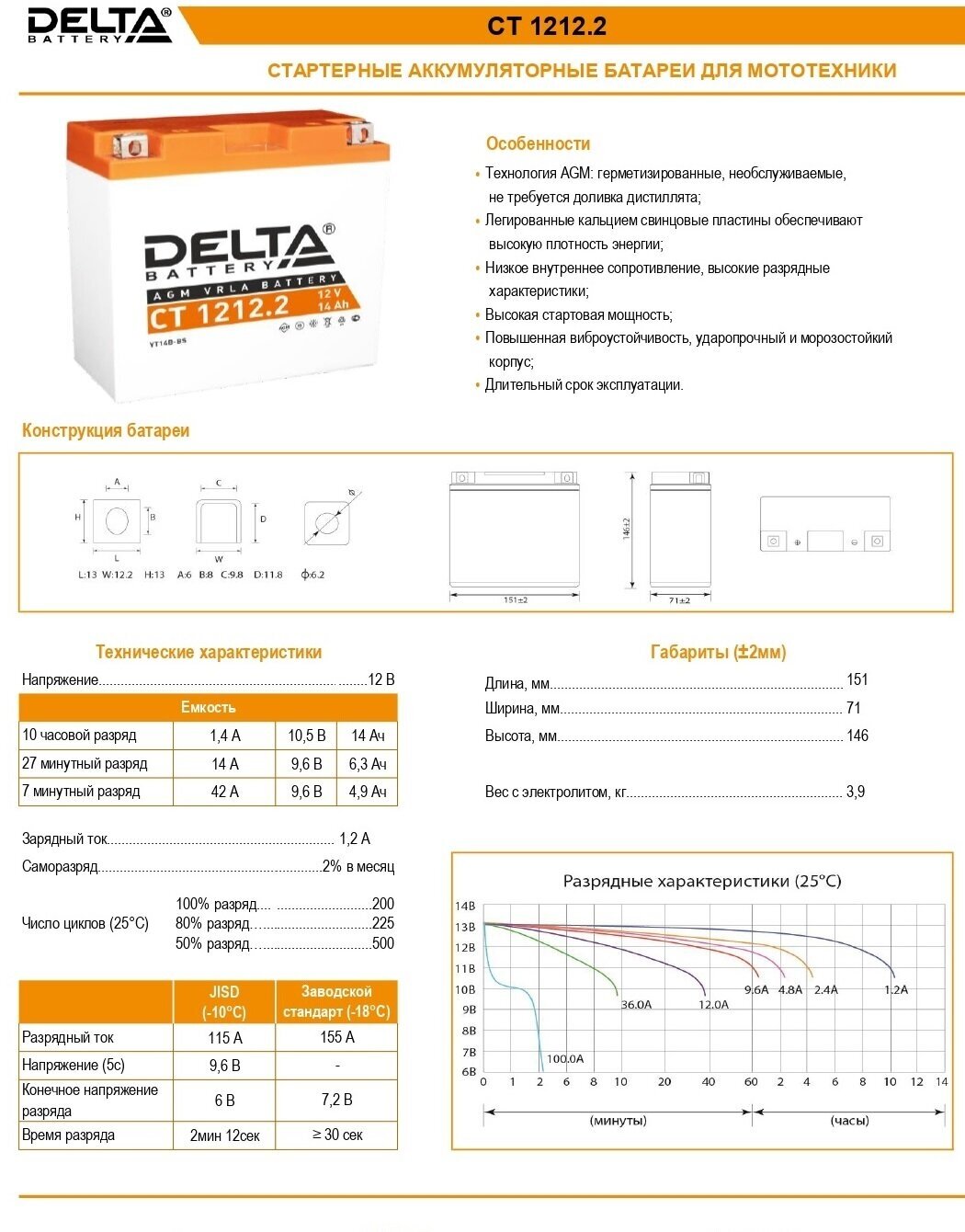 | Стандартная ёмкость при токе 10-часового разряда | 14 Ач |