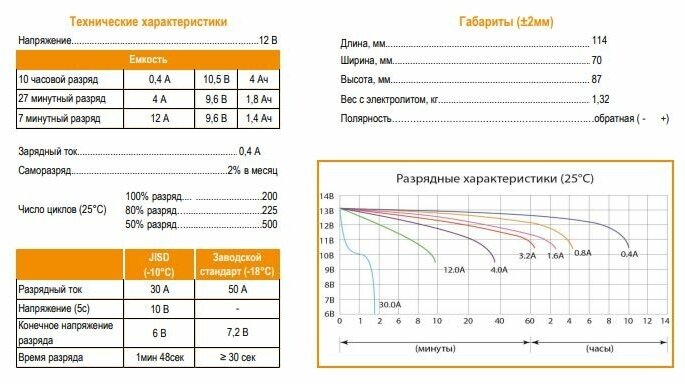 | Габариты АКБ | 114 x 87 x 70 мм |