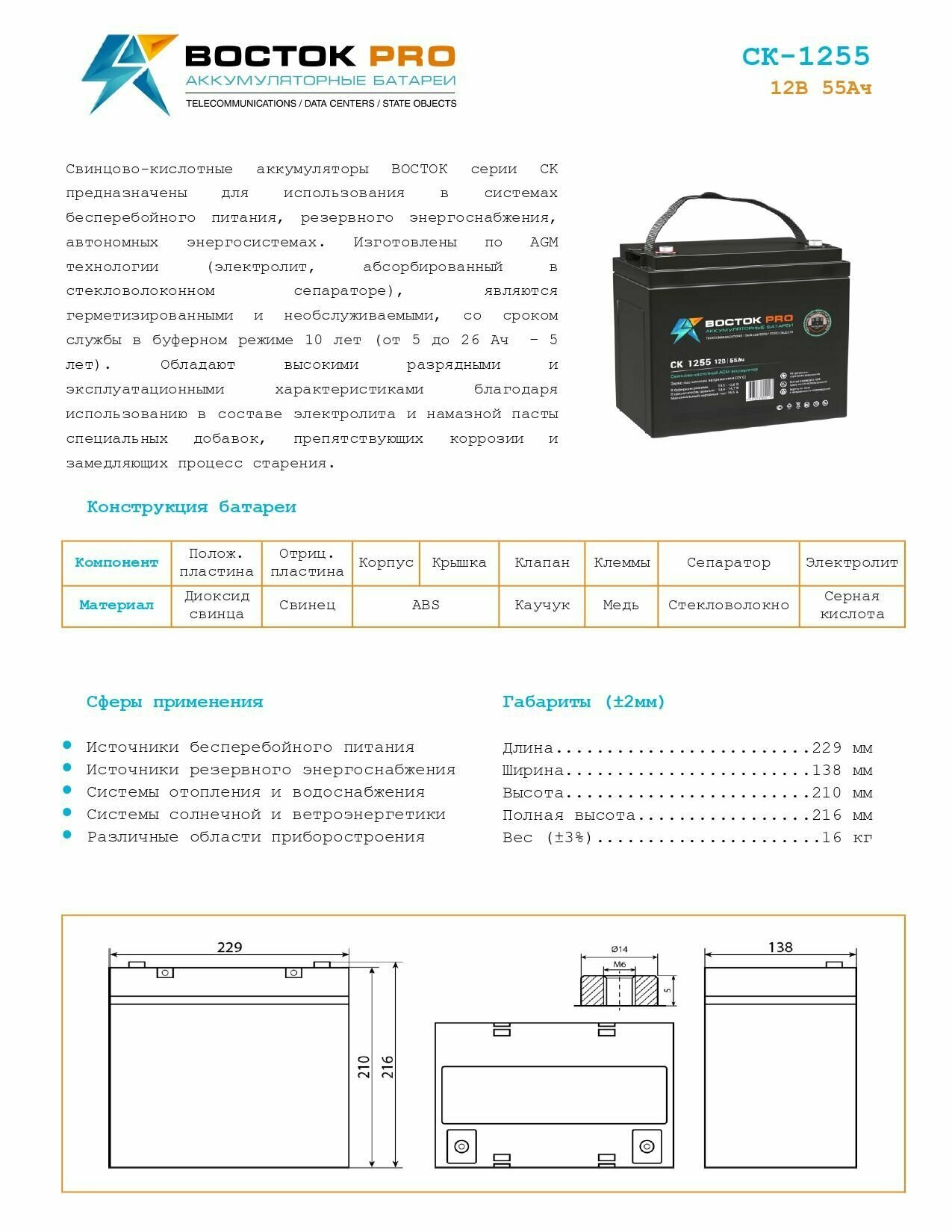 Аккумулятор для ИБП ВОСТОК СК 1255