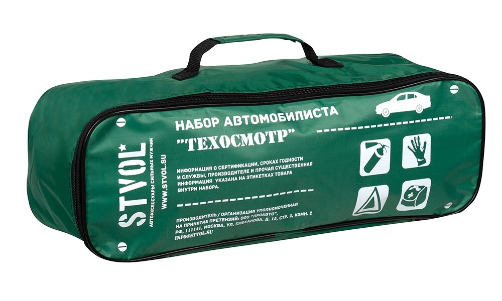 Аксессуары Stvol Набор автомобилиста Stvol Техосмотр поставляется в удобной сумке, которая закрывается на молнию. Он включает в себя необходимые предметы для прохождения техосмотра и для помощи на дороге. Все комплектующие, входящие в состав набора, соответствуют требованиям законодательства.