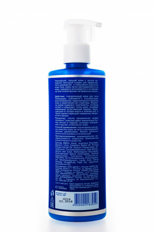 Нежнейший, тающий крем с легкой нежирной текстурой создан для эффективного увлажнения и повышения упругости кожи тела. Легко распределяется по коже, прекрасно впитывается и оставляет на теле тонкой аромат натуральных масел. Гиалуроновый крем для тела Librederm способствует восстановлению гидролипидного баланса кожи и укреплению ее структуры. Формула крема содержит компоненты, которые питают и повышают тонус кожи, создавая невидимый естественный барьер, защищающий от потери влаги в течение дня, а также препятствующий появлению неприятного запаха.