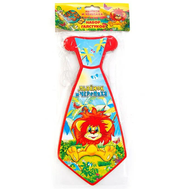 Долой официальные галстуки на школьной форме. Да здравствуют веселые галстучки для вечеринок! Этот аксессуар создаст мнимую серьезность детскому костюму на празднике, чем только позабавит его обладателя и окружающих. Он просто надевается на шею. Резинки уже закреплены на галстуке. А любимый герой из мультфильма «Львенок и Черепаха» поднимет настроение.