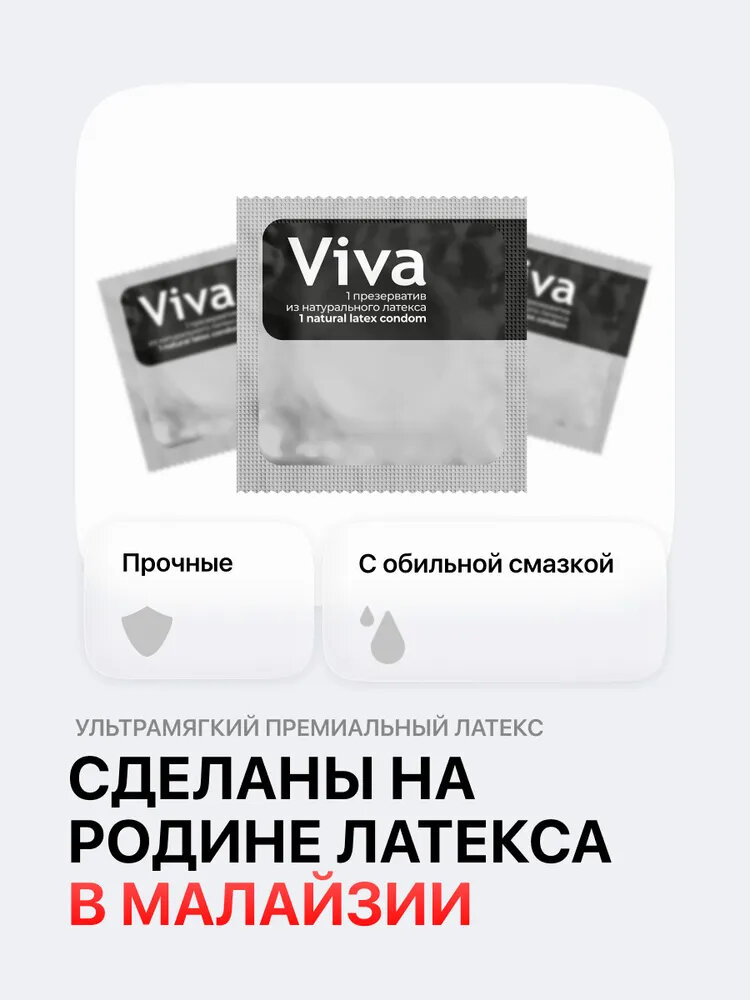Viva Классические – прозрачные гладкие презервативы цилиндрической формы с накопителем. Презервативы покрыты силиконовой смазкой, которая позволяет сохранить естественность ощущений и повысить комфорт. Если у Вас уже сложившаяся пара, если Вы хотите уделять больше внимания Вашему партнеру или партнерше – выбирайте классические презервативы Viva.