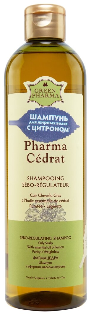 Себорегулирующий шампунь Greenpharma Pharma Cedrat с эфирным маслом цитрона имеет мягкую моющую основу растительного происхождения, которая не провоцирует гиперсеборею. Активные растительные компоненты, герань и эфирное масло цитрона, известные своими вяжущими свойствами, а также производные абиетиновой кислоты нормализуют деятельность сальных желез и снижают производство себума. Способ применения: нанести на влажные волосы, вспенить, смыть. Нанести второй раз. Оставить на несколько минут, смыть.