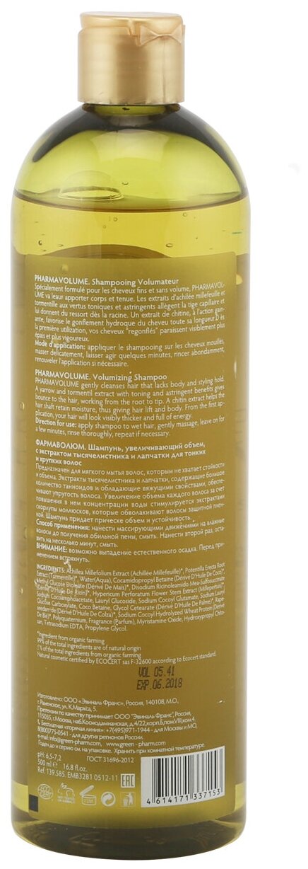 Шампунь Green Pharma Увеличивающий объем Pharma Volume 500 мл (212757)
