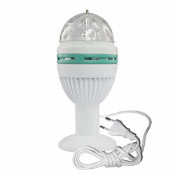 Светодиодная диско-лампа представляет собой устройство для создания эффекта светомузыки. Выполнена из пластикового корпуса в виде привычной лампочки, содержит внутри моторчик, который создает динамическое вращение потока разноцветных лучей. Благодаря цоколю е27 вы можете легко вкрутить диско-лампу в Вашу люстру или торшер и устроить настоящую вечеринку прямо у вас дома или на даче. Также Вы можете использовать цоколь на подставке, который идет в комплекте - просто вкрутите в него Вашу диско-лампу и подсоедините шнур питания подставки к сети 220В. Таким образом, установить диско-лампу можно на любую удобную поверхность, а специальные отверстия в подставке позволяют ее смонтировать на стену или потолок. Не ограничивайте себя в вопросе выбора места Вашей дискотеки! Создайте вечеринку уже сейчас!