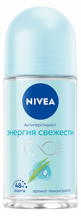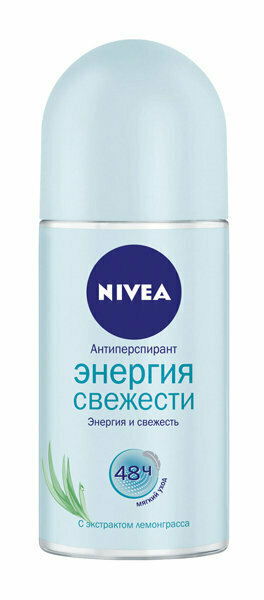 Дезодорант-антиперспирант Энергия свежести от NIVEA дарит Вам ощущение бодрящей свежести, которое Вы чувствуете весь день. Благодаря специальной формуле с экстрактом лемонграсса Вы можете эффективно контролировать уровень потоотделения в течение 48 часов. Оптимальная комбинация надёжной защиты от пота и бережной заботы от NIVEA.