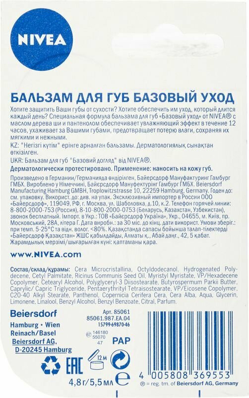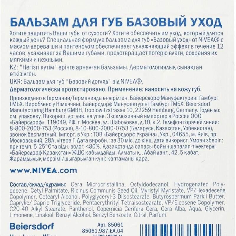 Хотите защитить Ваши губы от высыхания и обеспечить им уход, который длится каждый день? Увлажняющая формула с Hydra IQ и питательным маслом дерева Ши ухаживает за Вашими губами и предотвращает потерю влаги, сохраняя их мягкими и нежными. Бальзам для губ: обеспечивает интенсивный уход в течение длительного времени. Эффективно защищает губы от обветривания в любое время года. Обладает нейтральным ароматом, одобрен дерматологами, не содержит консервантов.