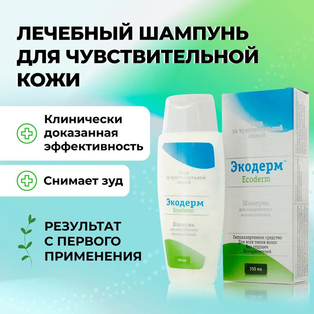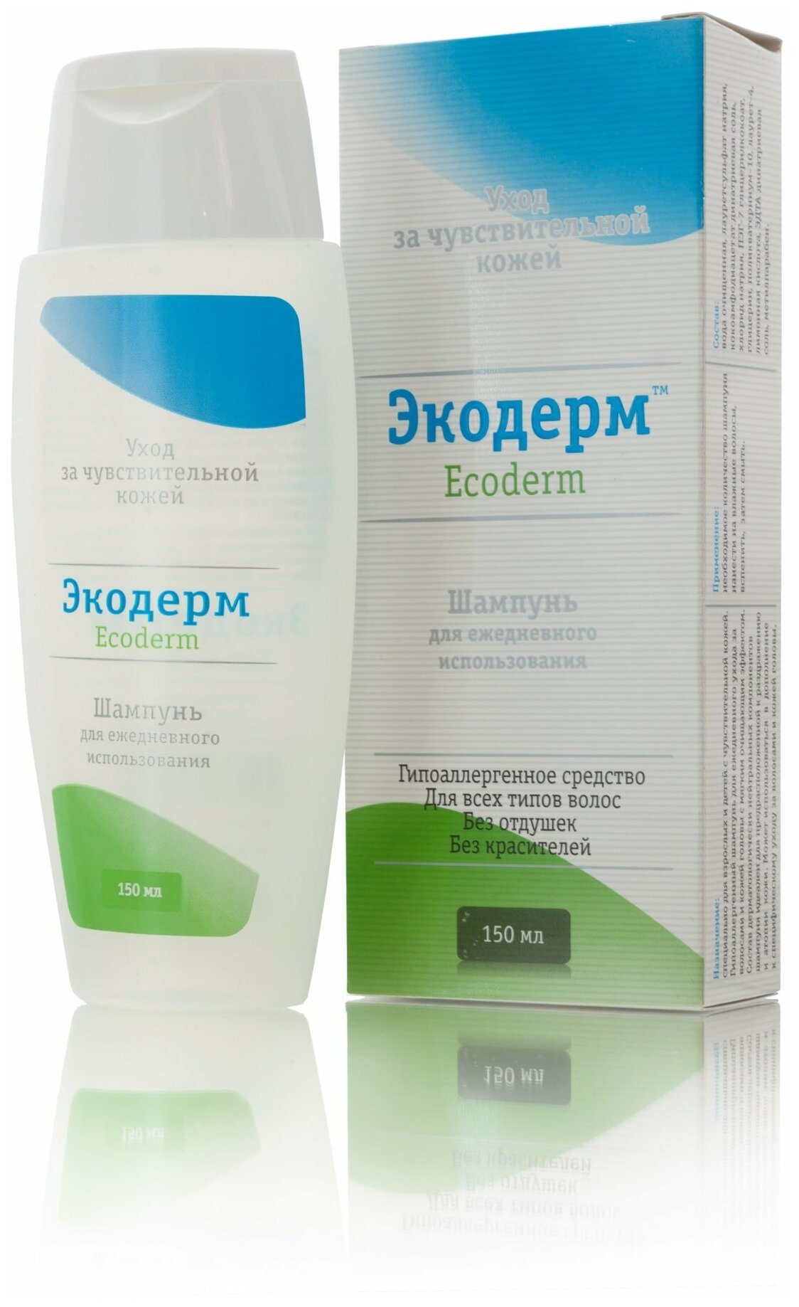 Гипоаллергенный шампунь Экодерм предназначен для ежедневного наружного применения в дерматологии и косметологии, а также детской практике с 1 года жизни. Шампунь показан в качестве базового средства по уходу за чувствительной кожей головы и тела, а также для чередования с лечебными шампунями и средствами. В дерматологии гипоаллергенный шампунь Экодерм применяется в качестве поддерживающей терапии у взрослых и детей, страдающих атопическим дерматитом, псориазом и себореей волосистой части головы. Может использоваться длительно как лечебно-профилактическое средство. При необходимости гипоаллергенный шампунь Экодерм может применяться ежедневно.
