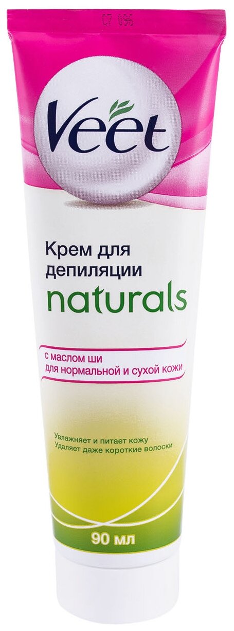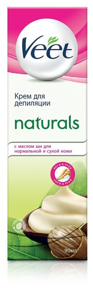 Крем для депиляции Veet Naturals для нормальной и сухой кожи с маслом ши удаляет волоски близко к корню, превосходно смягчает, питает и способствует интенсивному увлажнению, сохраняя ощущение гладкости и шелковистости на более длительный срок.В набор входит специальная лопаточка для удобного нанесения и удаления средства, которая обеспечит легкость использования и превратит уход за собой в комфортную и приятную процедуру. Крем разработан для удаления волос на ногах, руках, в области подмышек, линии бикини. Не предназначен для применения на лице, голове, груди, паховой области. Не рекомендуется наносить крем на шрамы, родинки, при угревой сыпи, поврежденной, раздраженной коже или при реакции кожи на солнечные ожоги, использовать крем раньше чем через 72 часа после бритья, так же при наличии побочных реакций в случае применения депиляционных кремов ранее.