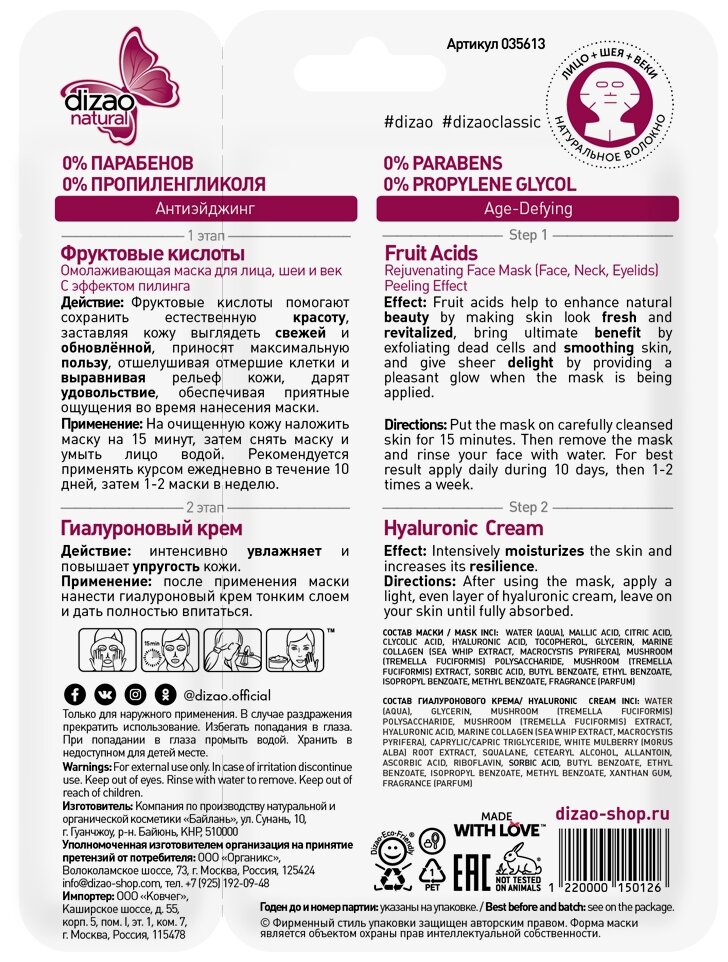 Маска Dizao Омолаживающая фруктовые кислоты (31644)
