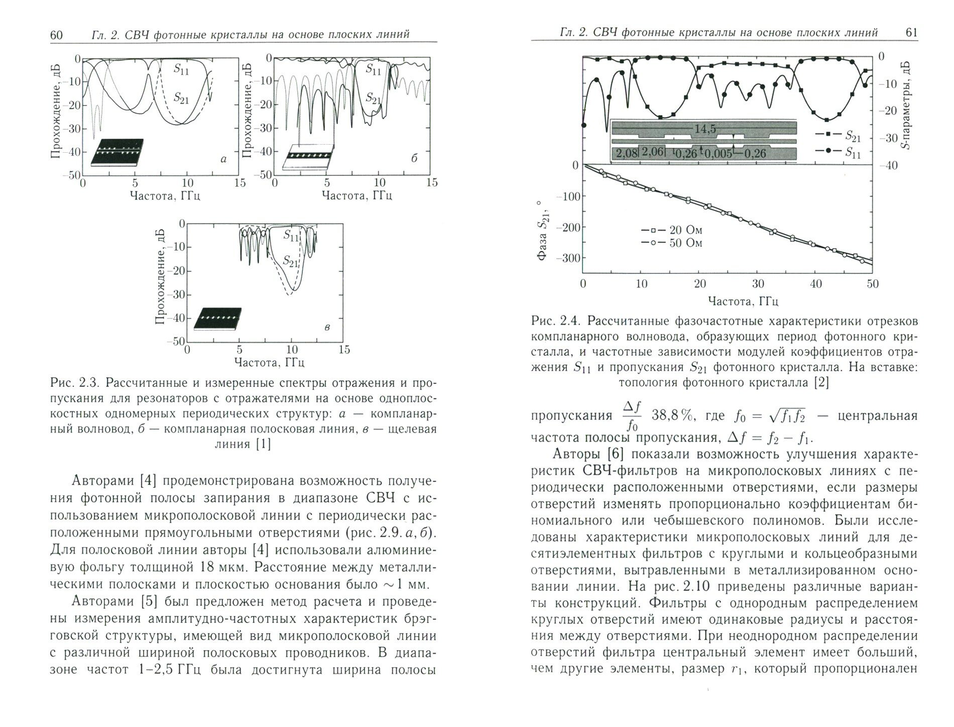 Обобщены оригинальные результаты теоретических и экспериментальных исследований свойств одномерных фотонных кристаллов на основе прямоугольных волноводов и плоских линий передачи. Рассмотрены возможности управления характеристиками СВЧ фотонных кристаллов с помощью электрического и магнитных полей. Приведены примеры новых областей применения СВЧ фотонных кристаллов, а именно: измерения параметров полупроводниковых слоистых структур, содержащих нанометровые металлические слои, и в качестве СВЧ согласованных нагрузок. Для специалистов и научных работников в области радиофизики, СВЧ твердотельной электроники, СВЧ-фотоники, аспирантов и студентов соответствующих специальностей.