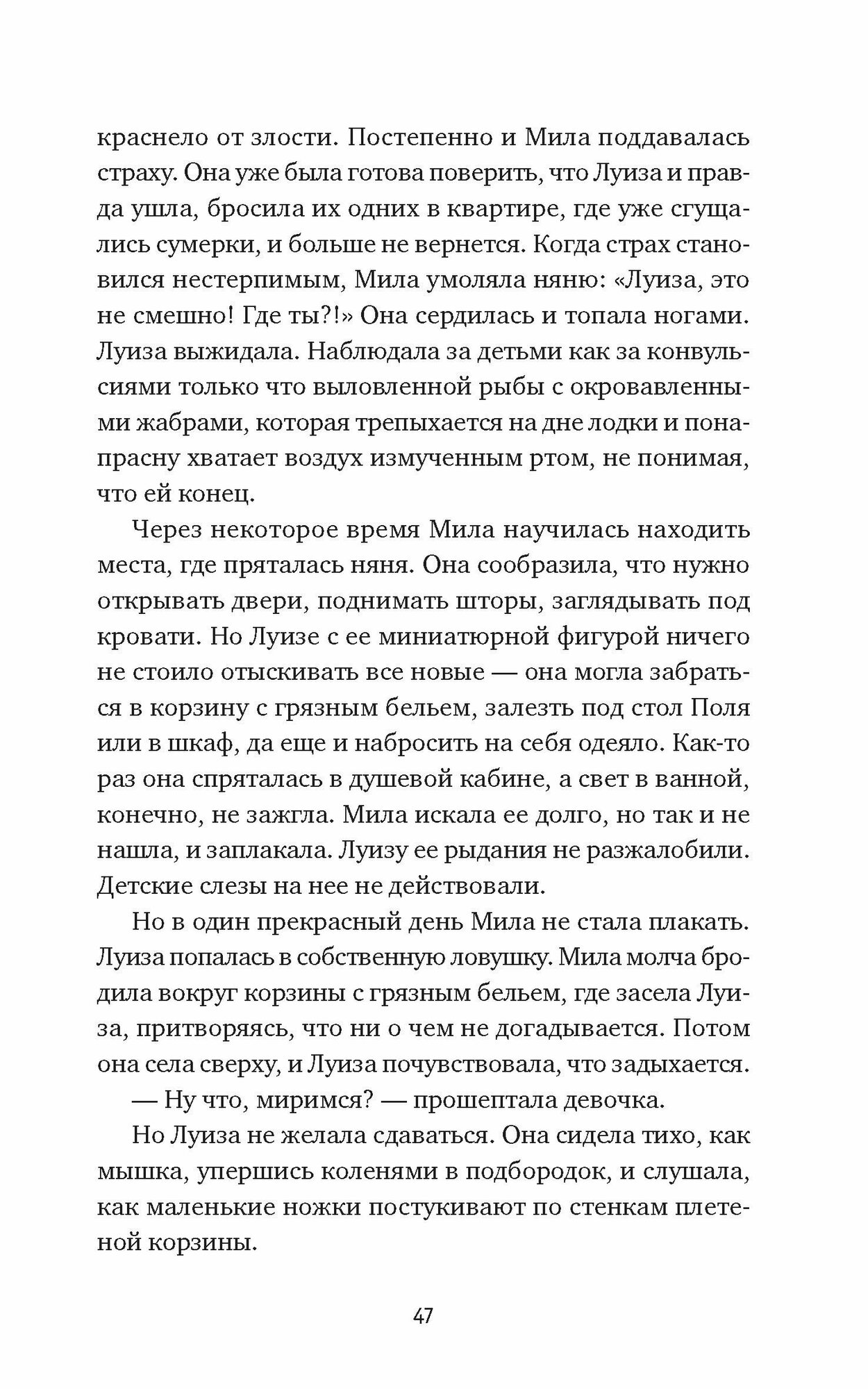 Очень-очень слабая книга.Деревянные герои,придурочные родители вызывают желание только задать вопрос: вы дебилы? Все какое-то нелепое и неуклюжее.Главная интрига раскрыта в самом начале. Происшествие имело место в жизни, 4 года назад во Франции(прочла в журнале).Далее никакого логичного сюжета!Автор имеет магрибские корни. Завязку сюжета взяла из новостей, а вот про развязку,мотивы этого поступка,там ничего сказано не было. Слимани попыталась выдумать несколько скудных теорий, но в итоге ничего путного не вышло. То,о чем написано в начале книги , автор напрочь забывает ближе к концу.Это вообще,позор, а не лауреат Гонкуровской премии...Раньше для этого нужно было быть Роменом Гари или Симоной де Бовуар!!! Теперь проще все у них - быть человеком из какой либо этнической группы и жить во Франции. Выберут просто из-за толерантности,иначе судей обвинят в предвзятости,выбрать тему, которая задела бы чувства каждого человека.И все,больше,можно не напрягаться ! Не рекомендую к прочтению.