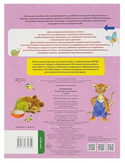 Математика. Сложение и вычитание. 1 класс (Татьяна Позднева); ООО "Издательство Астрель", 2018