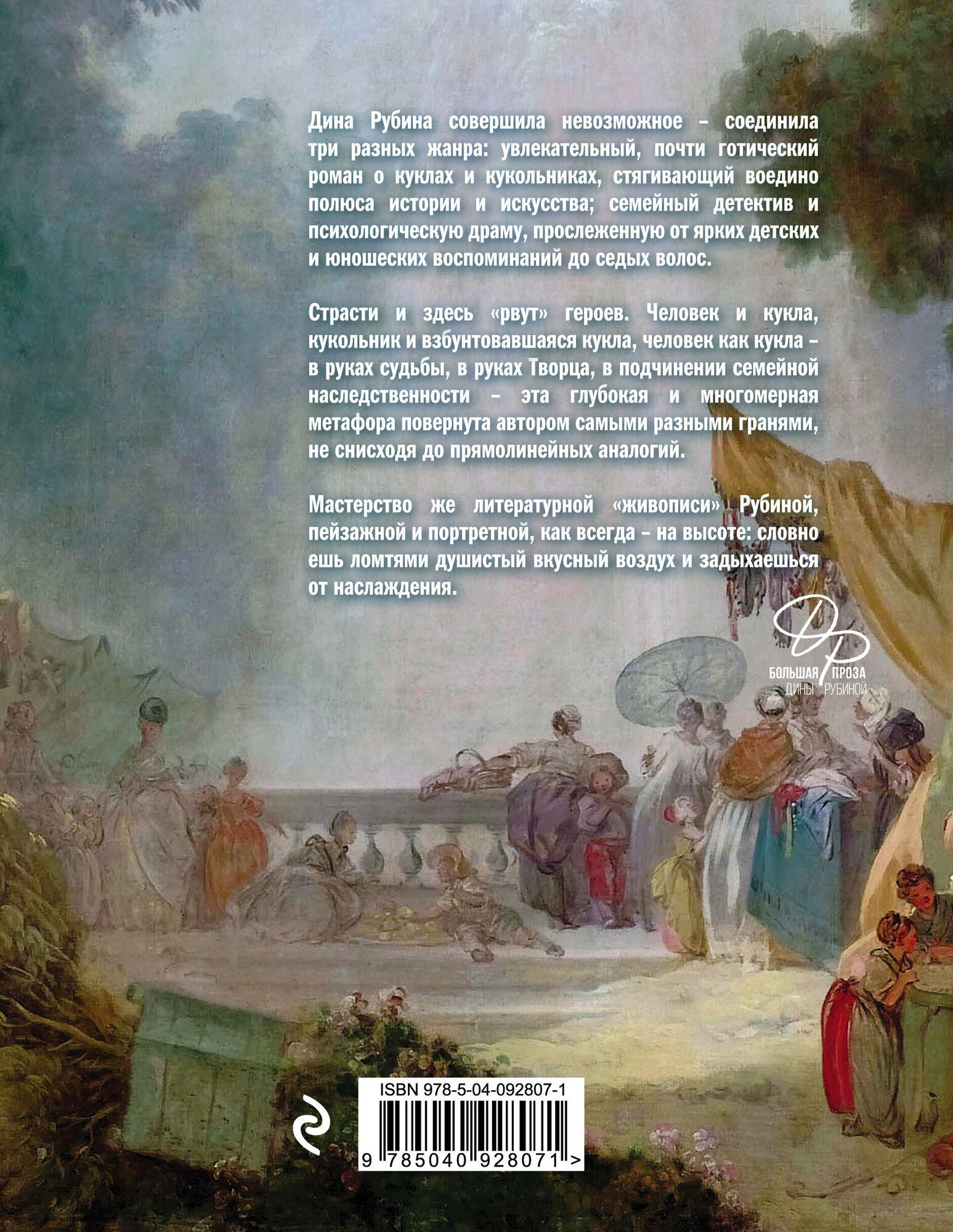 Очень сильная книга. Но читалось почему-то нелегко, возможно, из-за сильного психологического подтекста. Да что там, какой подтекст – всё открытым текстом, всё напрямую, открыто и откровенно. Дина Ильинична Рубина настоящий классик прозы нашей современности, мне нравится её стиль – витиеватый такой, современный, но немного словно и старомодный, пишет она не спеша и немного нараспев – я так слышу её тексты. Каждую её книгу я читаю довольно долго, потому что автор весьма щедра на всяческие описания, плюс её вхождение в тематику просто поражает – дотошно, скрупулёзно, очень информативно. Я ценю подобный подход, считаю, что серьёзный автор тем и выделяется – своим, как бы точнее сказать, фундаментализмом, что ли, у него нет мелких деталей, даже описывая вскользь что-либо, что мимолётное описание будет точным и предметным, что предполагает глубинное изучение предмета. Дина Рубина именно такова, все её книги – это и сюжет, и великолепные истории, и красивейший слог и, одновременно со всем этим, настоящий кладезь информации. «Синдром Петрушки» красивая и грустная книга с той самой рубинской мистикой и лёгкой недосказанностью, история тянется из прошлого, читатель знакомится с главными героями ещё из их детства, история трогательного знакомства и любовных отношений идёт через всю книгу. Знаю, что есть фильм, но не хочу его смотреть, несмотря на занятых там талантливых российских актёрах, мне дороже свои впечатления и я не хочу делить их с представлениями режиссёра и актёрскими возможностями. Финал непредсказуем, но куклы должны занимать своё место – в руках людей а не жить вместо них и не занимать их место. Советую прочитать. Впрочем, как можно не посоветовать читать книги Рубиной?