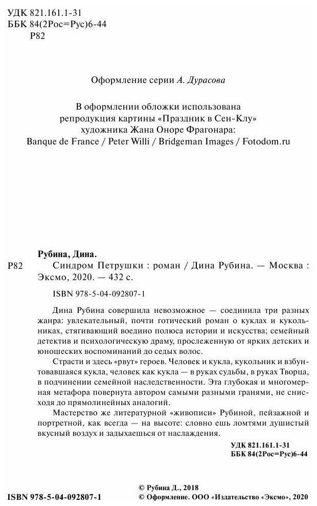 Сервис сравнения цен СкидкаГИД предлагает сравнить цены на товар «Книга: Синдром Петрушки (Рубина Дина Ильинична); ООО "Издательство "Эксмо", 2020»