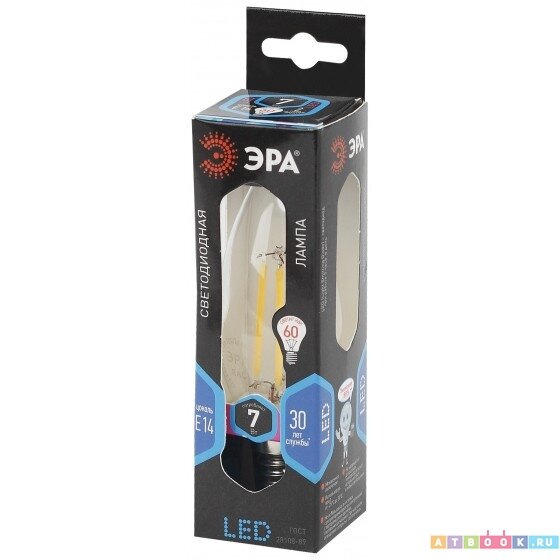 ЭРА F-LED Лампа светодиодная филаментная свеча E14 170-265В 7Вт 4000К Филаментные лампы с прозрачной колбой выгодно смотрятся в современных интерьерах, напоминают старую добрую лампу накаливания, но со сроком службы 30000 часов, гарантией 2 года и значительной экономией электроэнергии. Сквозь стекло таких ламп хорошо видны яркие нити накаливания. Это создаёт тёплую ретро атмосферу, поэтому filament lamps так популярны при создании дизайна в стиле прошлых эпох.