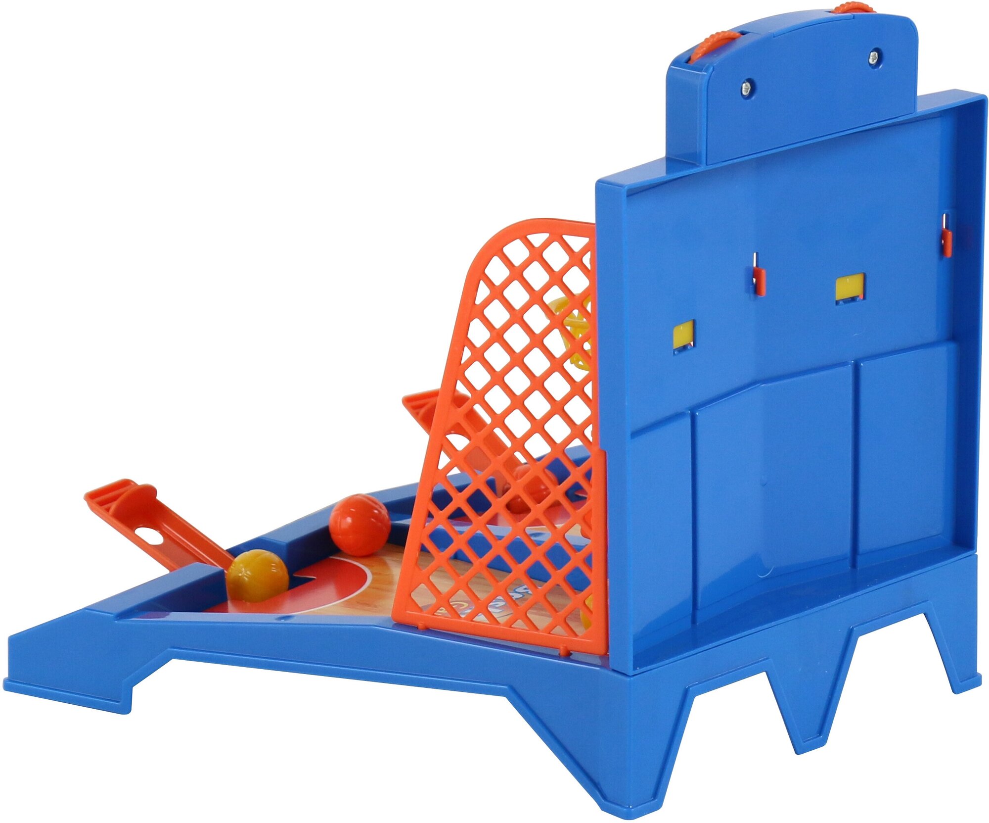 Игра Баскетбол для 2-х игроков представлена в виде игрового поля с двумя баскетбольными кольцами. Зона каждого игрока отделена перегородками. Нижняя часть конструкции оснащена двумя механизмами с пружинами для забрасывания мяча в корзину. Для подсчета голов на стороне каждого игрока имеется табло. Побеждает тот игрок, который смог забросить в корзину большее количество мячей. В набор входит 6 мячей для баскетбола. Игра Баскетбол станет незаменимой для проведения домашних чемпионатов.